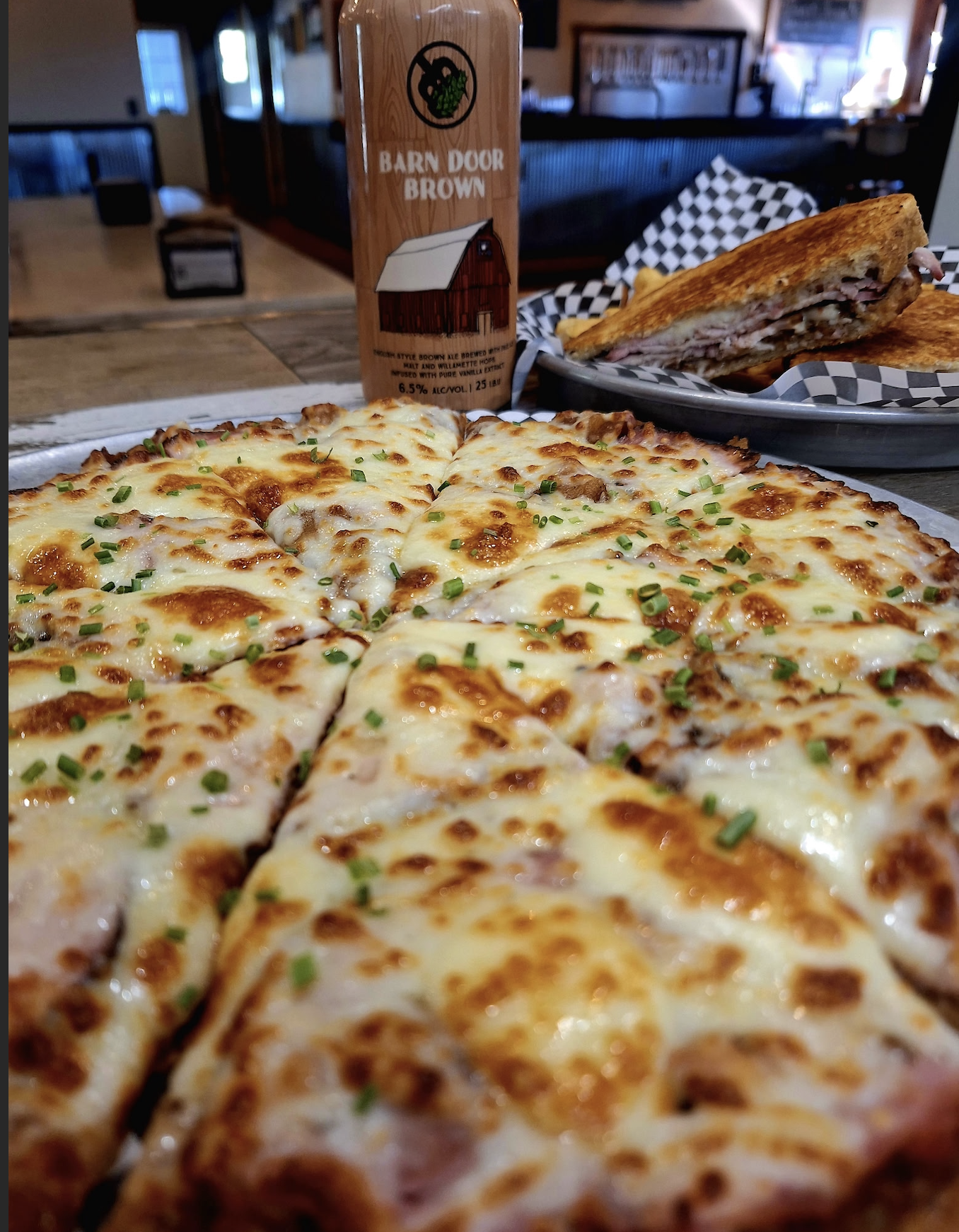 Vanilla Barn Door Brown: An English style brown ale with vanilla. Malty, dark, and sweet. 6.5% ABV 13 IBU
